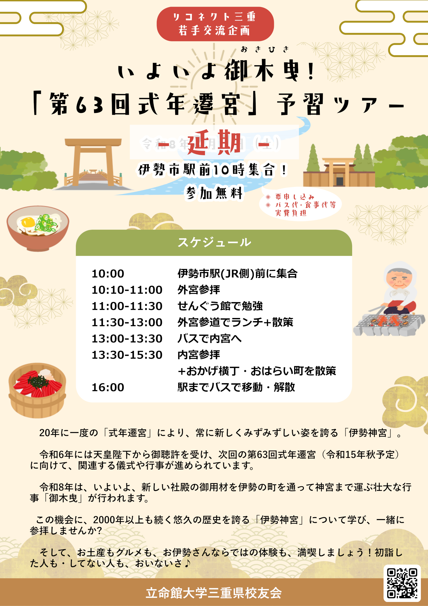 【New】【リコネクト三重】「第63回式年遷宮」予習ツアーの延期のお知らせ