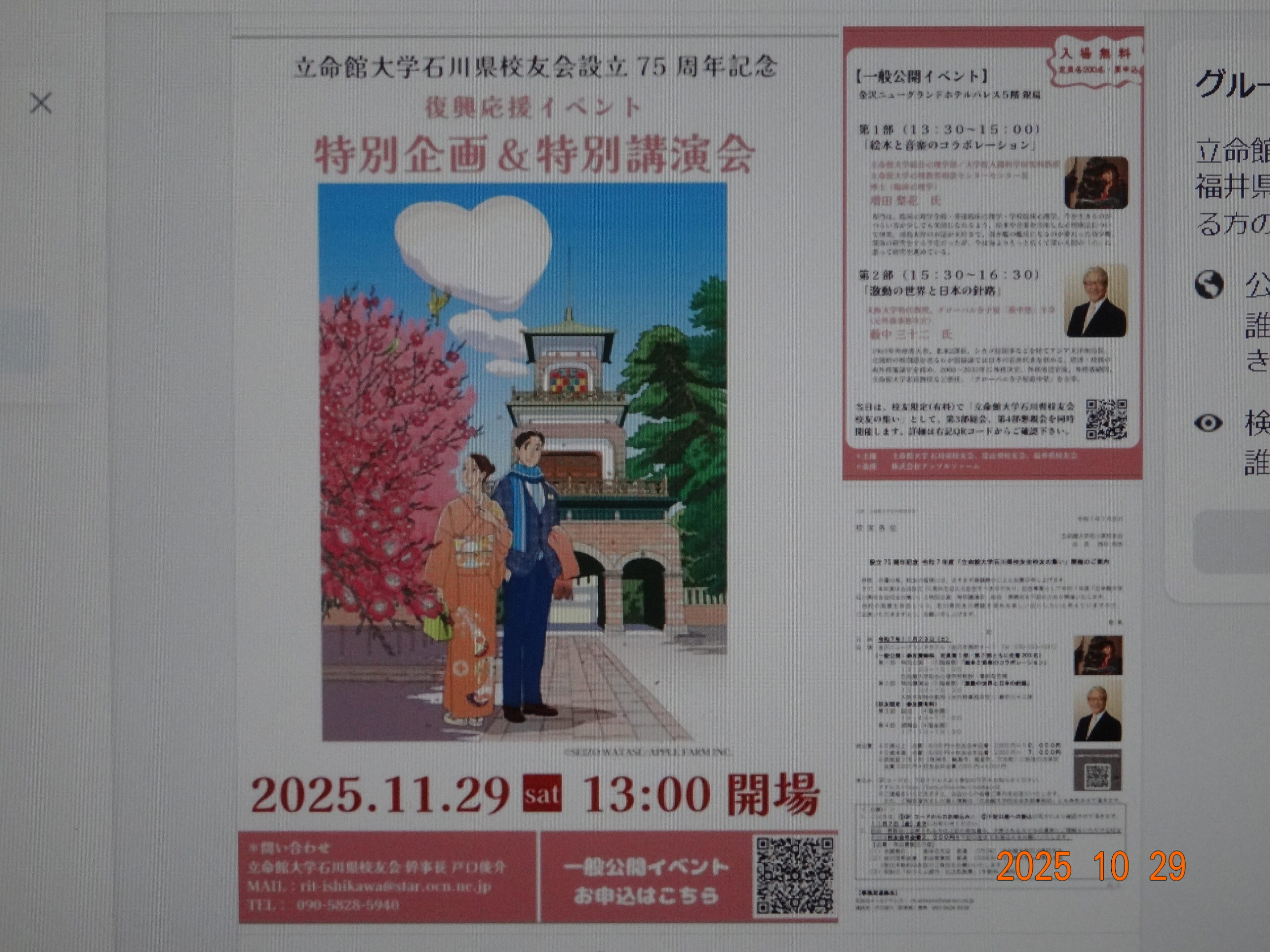 11月29日金沢ニューグランドホテルにて「第3回立命館大学校友会北陸ブロック会」が開催されました。
