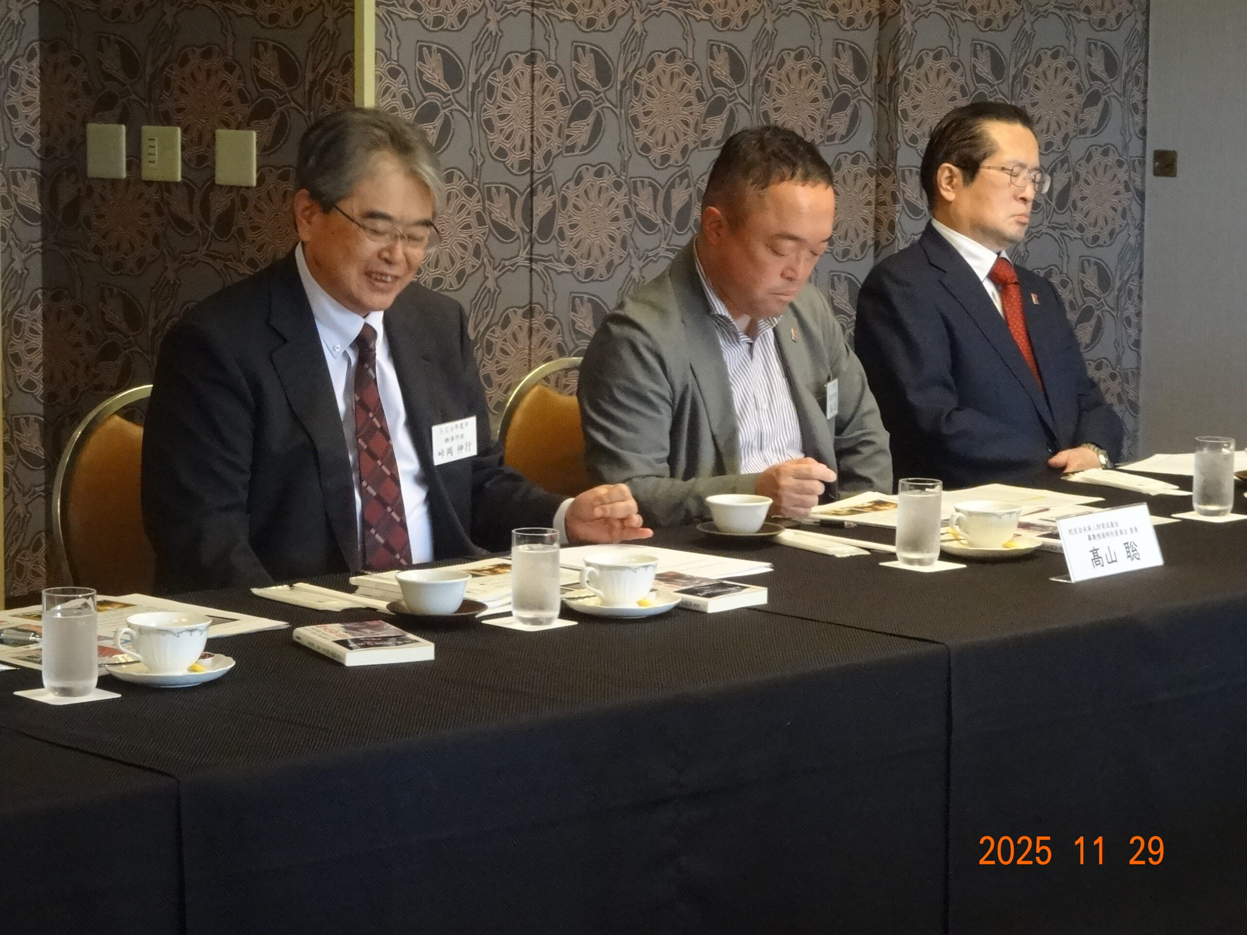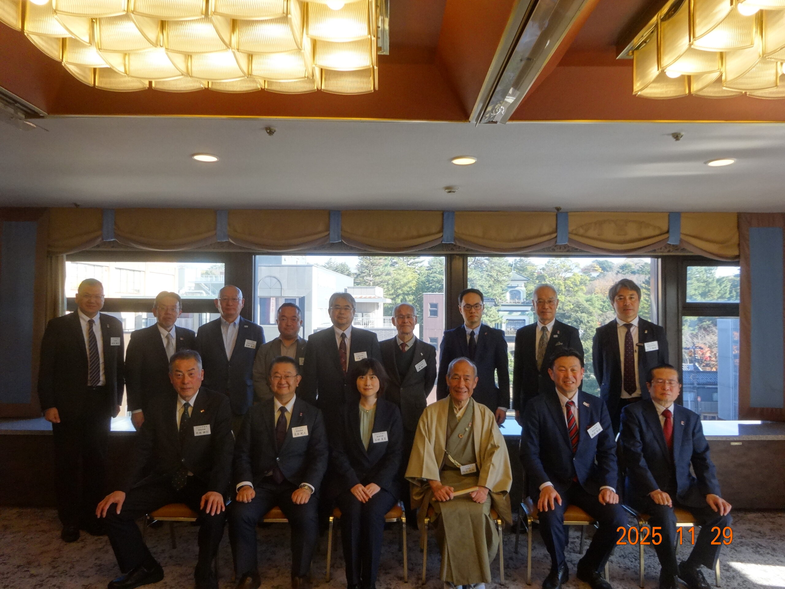門川大作会長、茨木紀夫副会長、初村雅敬常任幹事、事務局から井上拓也事務局長、田中翔太課長補佐、福井県校友会からは、峠岡会長以下4名が出席しました。石川県・富山県校友会からも各3名出席しました。