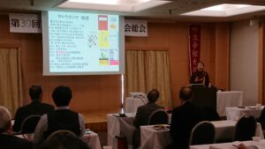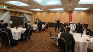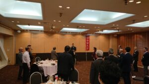 第2部では、学校法人立命館副総長(兼)立命館大学副学長(兼)立命館大学総合心理学部教授 サトウタツヤ様より、立命館大学の近況と、今から役立つ心理学について、ご講演頂いた。例えば、立命館大学は宇宙開発に関わっており、実はNHKで放送された。立命館大学は宇宙開発に関わっていないはずだと思い込んでいる人は、テレビの字幕に立命館大学があることに気付かなかったと思う。なるほど、これが心理学か。とても貴重な講演であった。最後に、急遽参加された川崎副会長(プロバスケットボールチーム茨城ロボッツ社長)から、茨城ロボッツの近況についてご紹介頂いた。
