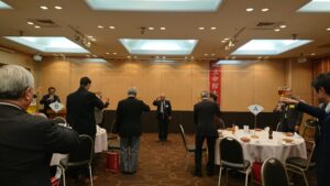 第3部では、当校友会木村元会長の乾杯音頭で懇親会が始まった。ご歓談の合間合間に、木山幹事長から指名された若干名の方より、近況報告のご挨拶を頂いた。最後は、千葉県校友会 阿部敬史様取りまとめで応援歌斉唱を行ったのち、寺田副会長から閉会挨拶があり、お開きとなった。