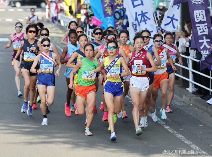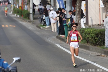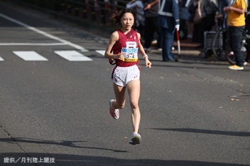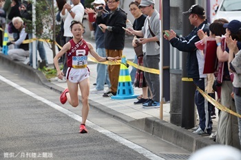 1区を任されたのは、太田咲雪選手(スポーツ健康科学部2回生)。先頭集団を引っ張り、トップと2秒差の区間2位の好タイムでたすきをつなぎました。2区の山本釉未選手(スポーツ健康科学部1回生)は、「立命館大学の一員として走るのが夢だった」と語る杜の都を区間新記録で力走。2位に20秒の差をつけ、チームの大黒柱、村松選手につなぎました。