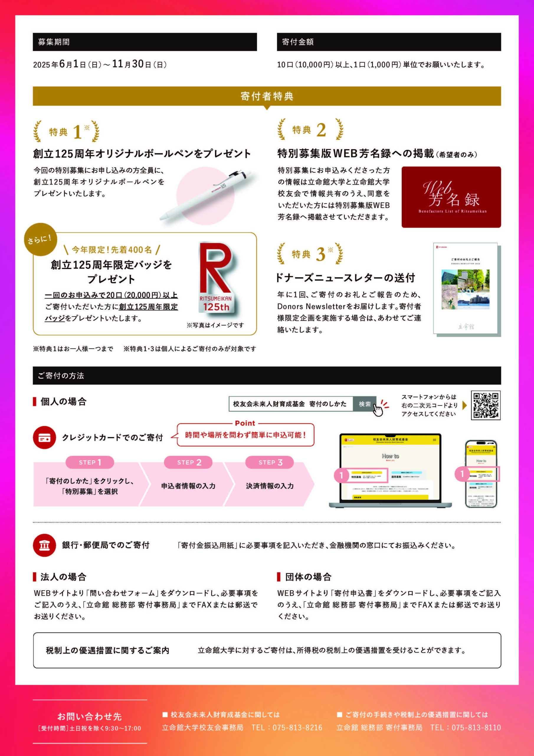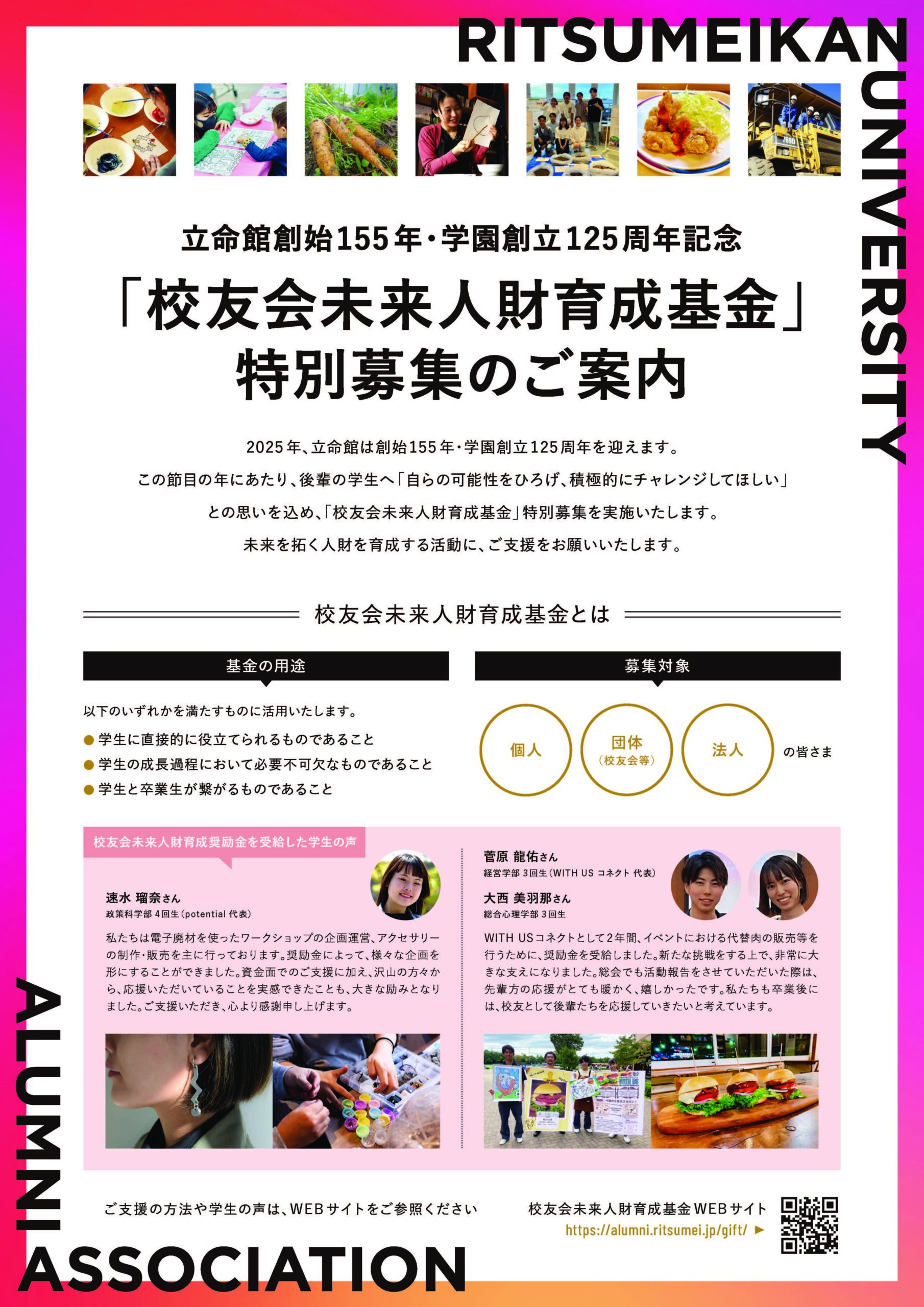 2025 年、立命館は創始155 年・学園創立125周年を迎えました。