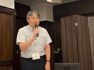 続いて、総会議事として、令和6年度の活動・決算報告、令和7年度の活動計画・予算、役員改選について全会一致で承認された後、未来人財育成基金の現状報告が馬場幸蔵氏(’76産社)から行われ、よりいっそうの協力の呼びかけがありました。総会の後は、サトウタツヤ教授より「今から役に立つ心理学」という演題でご講演をいただきました。心理学という学問を、参加者がまさに「今そこで起こりうる」事例や「どこにでもある」事象を、五郎丸ポーズなど誰にでもわかりやすい例を交えて、楽しくお話しいただきました。