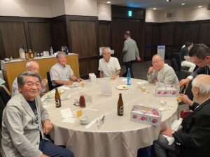 久しぶりに再会し、近況や大学時代の思い出などに花をさかせました。また恒例となった参加者一人一人が壇上にたつ近況を報告など、アットホームな雰囲気ですすみ、お楽しみ抽選会なども企画され、参加者から笑顔のこぼれる楽しい会となりました。フィナーレは全員が肩を組んで応援歌「グレーター立命」を歌い、盛会の中のお開きとなりました。二次会も同ホテルのラウンジに場を移して行われ、夜が更けるまで語りあいました。