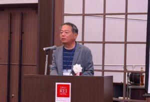 その後、大学を代表して、学校法人立命館総務部次長でOIC事務局長の五坪智彰氏から、総会開催のお祝いとともに、デザインアート学部の新設や関西万博への出展、宇宙分野へ取組など、大学の近況報告をいただきました。