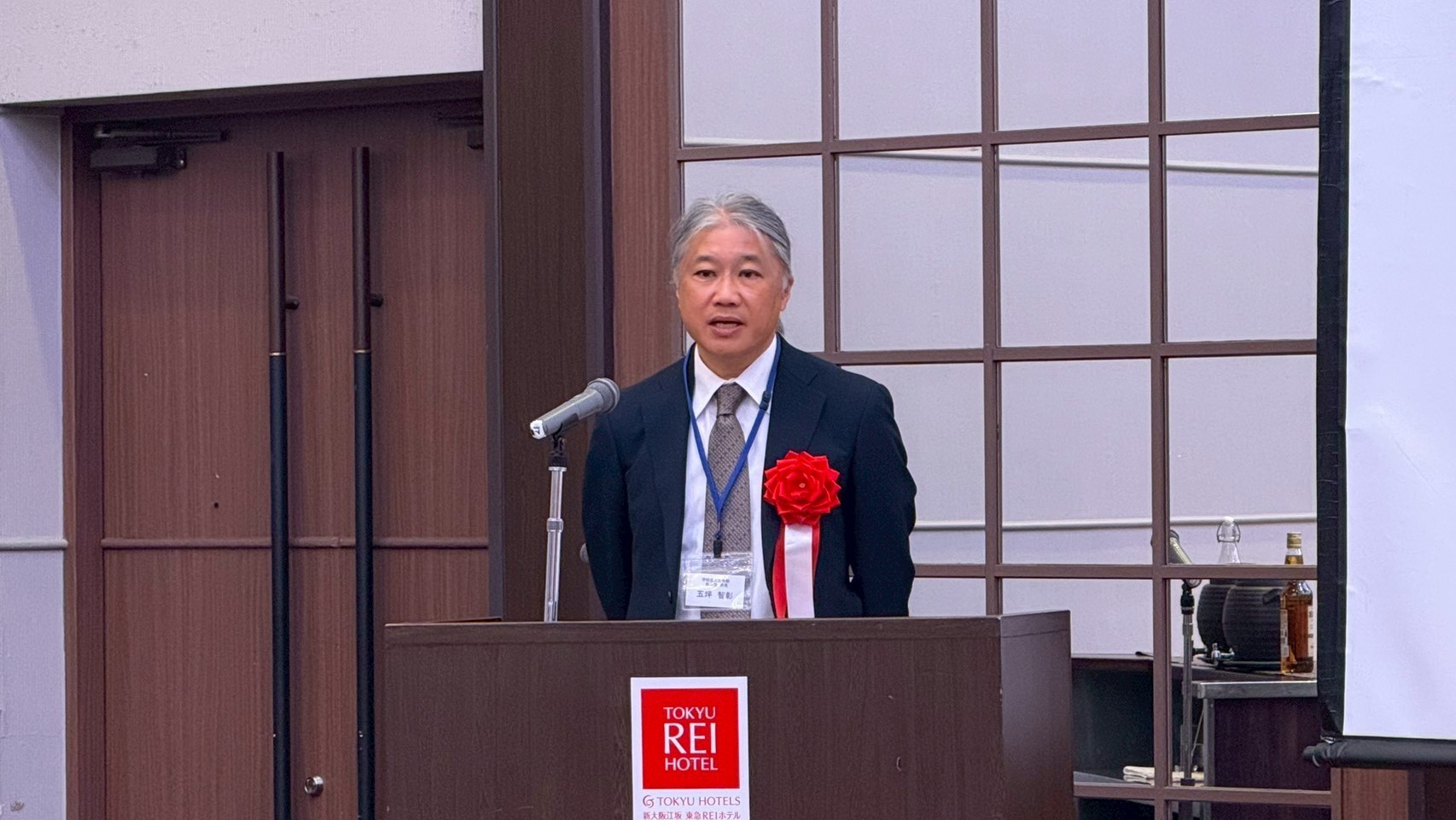 その後、大学を代表して、学校法人立命館総務部次長でOIC事務局長の五坪智彰氏から、総会開催のお祝いとともに、デザインアート学部の新設や関西万博への出展、宇宙分野へ取組など、大学の近況報告をいただきました。