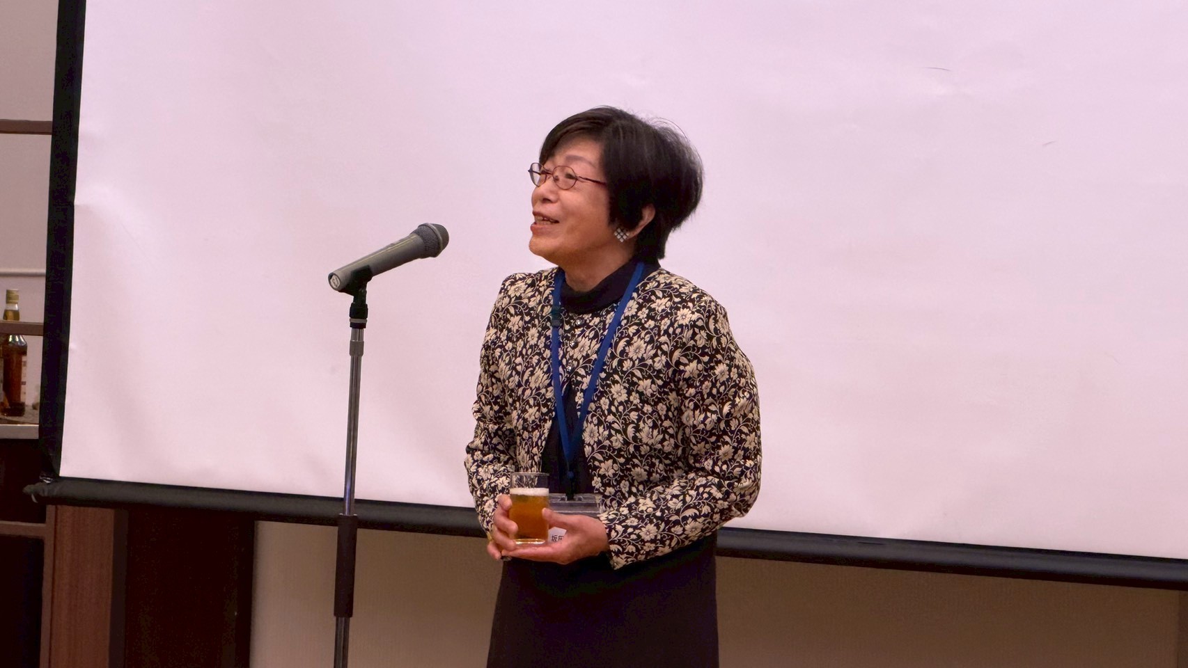 次に来賓を代表して、大阪校友会の中田真理子副会長(‘05院経営卒)から、平素の大阪校友会への協力に対するお礼の言葉と「北摂校友会あっての大阪校友会と思っているので、今後ともよろしくお願いしたい」とお祝いの挨拶がありました。