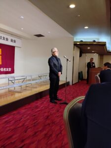 議事のあと、来賓ご挨拶では、立命館大学:伊坂忠夫副学長、APU立命館アジア太平洋大学:淺野昭人副学長、立命館大学校友会:飯田俊之副会長よりご挨拶をいただき、総会は閉会となった。
