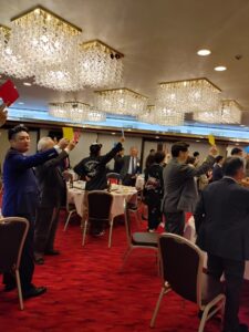 最後は参加者で円陣を組み、足立直隆幹事(’76産社)のリードによる「グレーター立命」斉唱とエール、石川征仁氏(‘67法)の一本締めで幕を閉じた。