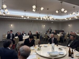 第二部の懇親会は、白武 悟顧問('68経済)の乾杯発声で開宴し、和やかな雰囲気のもと開宴し、歓談の中で初参加の4名が自己紹介を行いました。