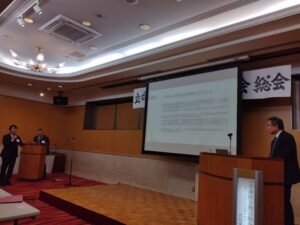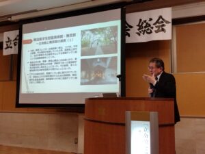議事においては、土屋会長が議長となり「2024年度の活動報告・会計および監査報告」が説明され、了承されました。続いて「2025年度活動計画・予算案」が提示され、いずれも承認されました。続いて、舟橋岳示氏(RFS)('88法)より未来人財育成基金の現状報告と寄付募集の案内があり、最後に内岩望副会長(’81理工)が閉会のことばを述べ、第一部を締めくくりました。