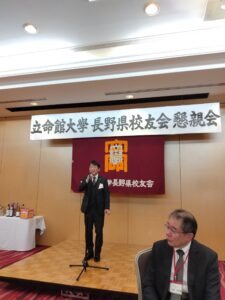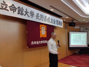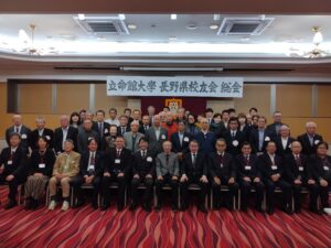 11月16日(日)13時30分より、長野県松本市の「ホテルモンターニュ松本」において「2025年度 立命館大学長野県校友会総会・講演会・懇親会」が開催され、県内各地の校友に加え、関東甲信越の校友会からの来賓など計56名が参加しました。
