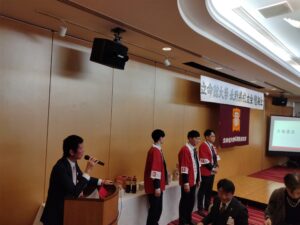 最後には、長野県の県歌「信濃の国」を全員で合唱し、続いて応援歌「グレーター立命」を熱唱しました。また同時刻に行われていた明治神宮野球大会で硬式野球部が勝利したとの報告が校友会事務局よりあり、会場は一層盛り上がりに包まれ、懇親会は盛会のうちに閉会しました。