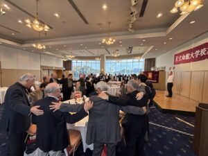 活気溢れ賑やかな交流・懇親が進み宴もたけなわとなった頃、応援団OBの名越陽介氏('09政策)リードによる応援歌を参加者全員が肩を組み熱唱しお開きとなった。