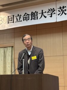 2025年11月29日(土)、茨城県水戸市の水戸三の丸ホテルにおいて、第30回立命館大学茨城県校友会総会・講演会・懇親会が開催された。参加者は来賓11名含めて計24名だった。