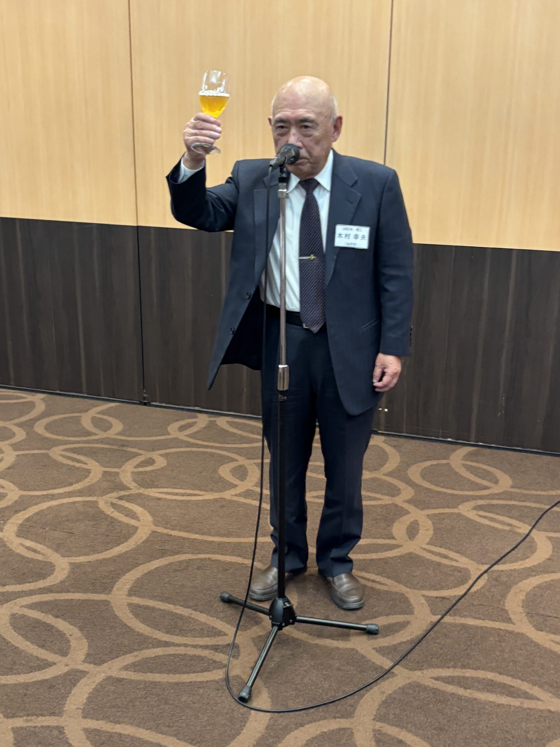 第3部の懇親会も引き続き木山幹事長が司会進行をおこない、木村幸夫前会長('62理工)の高らかな乾杯発声により開宴となった。参加者は水戸三の丸ホテルの美味しい料理を堪能しながら会話も弾み、笑顔と笑い声に包まれる中、木山幹事長から指名された方々が順次マイクを握り、ユーモアを交えた学生時代の思い出や近況を語り空手の演武を披露されたり会場は一気に盛り上がった。