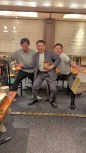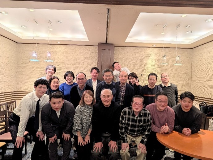 北九州校友会では12月20日(土)「ウインターパーティー2025」を開催しました。1年を振り返りながら、一人一人近況報告をしていただき、先日の総会で北九州校友会に初めて参加された方々とも更に親睦を深めることが出来ました。特に若い世代のテーブルでは笑いが絶えず、新しいつながりも生まれたようで、これからの校友会活動を共に盛り上げていただければと思います。ささやかなクリスマスプレゼントも用意し、青年部が中心となった絵合わせくじは大いに盛り上がりました。皆で楽しい時間を過ごし、世代を超えた「校友」としての絆と親睦を深めることができました。