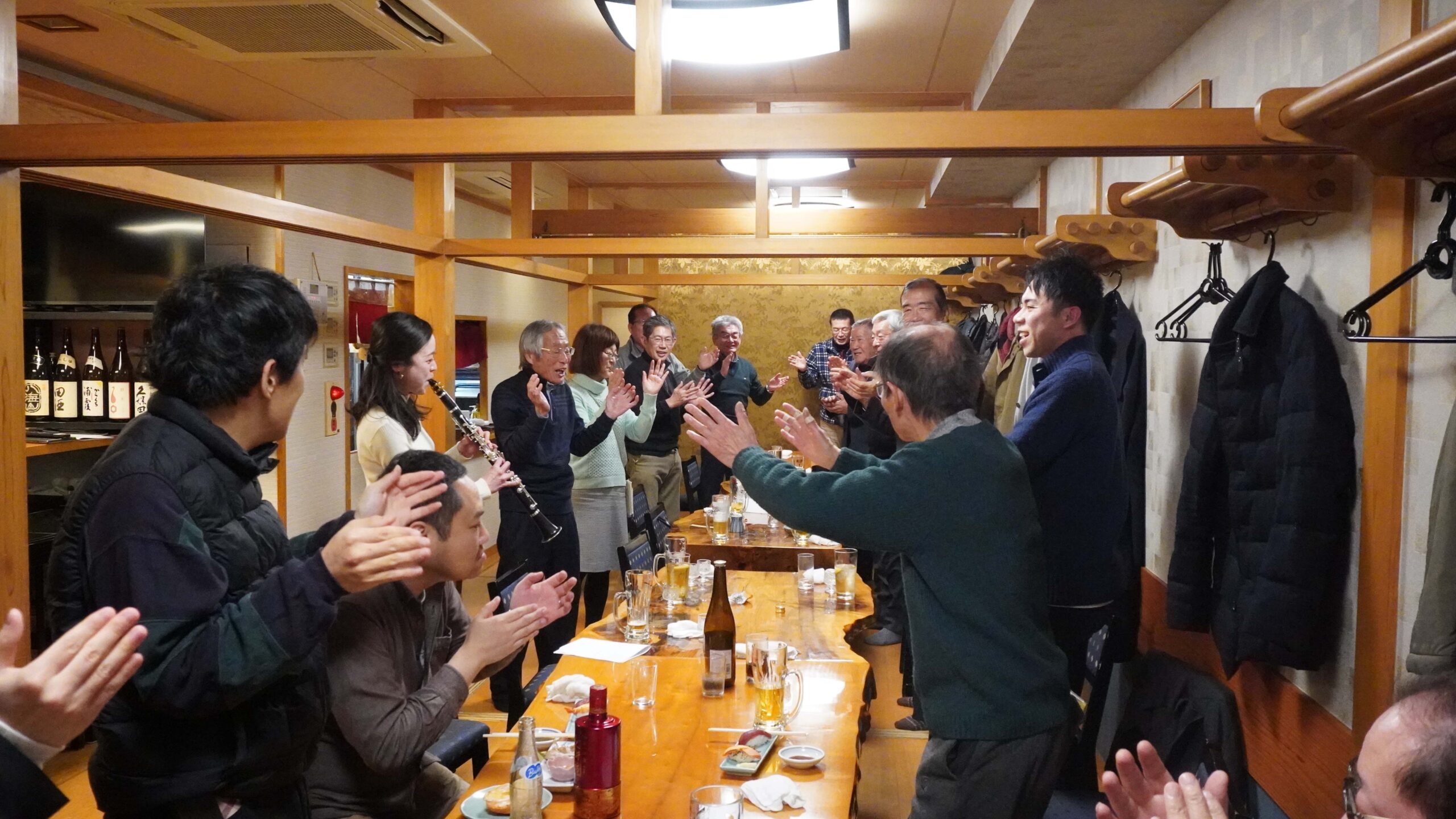 本新年会は、当日は20名の参加となりました。1960年経済学部卒業の89歳の先輩を最年長として、