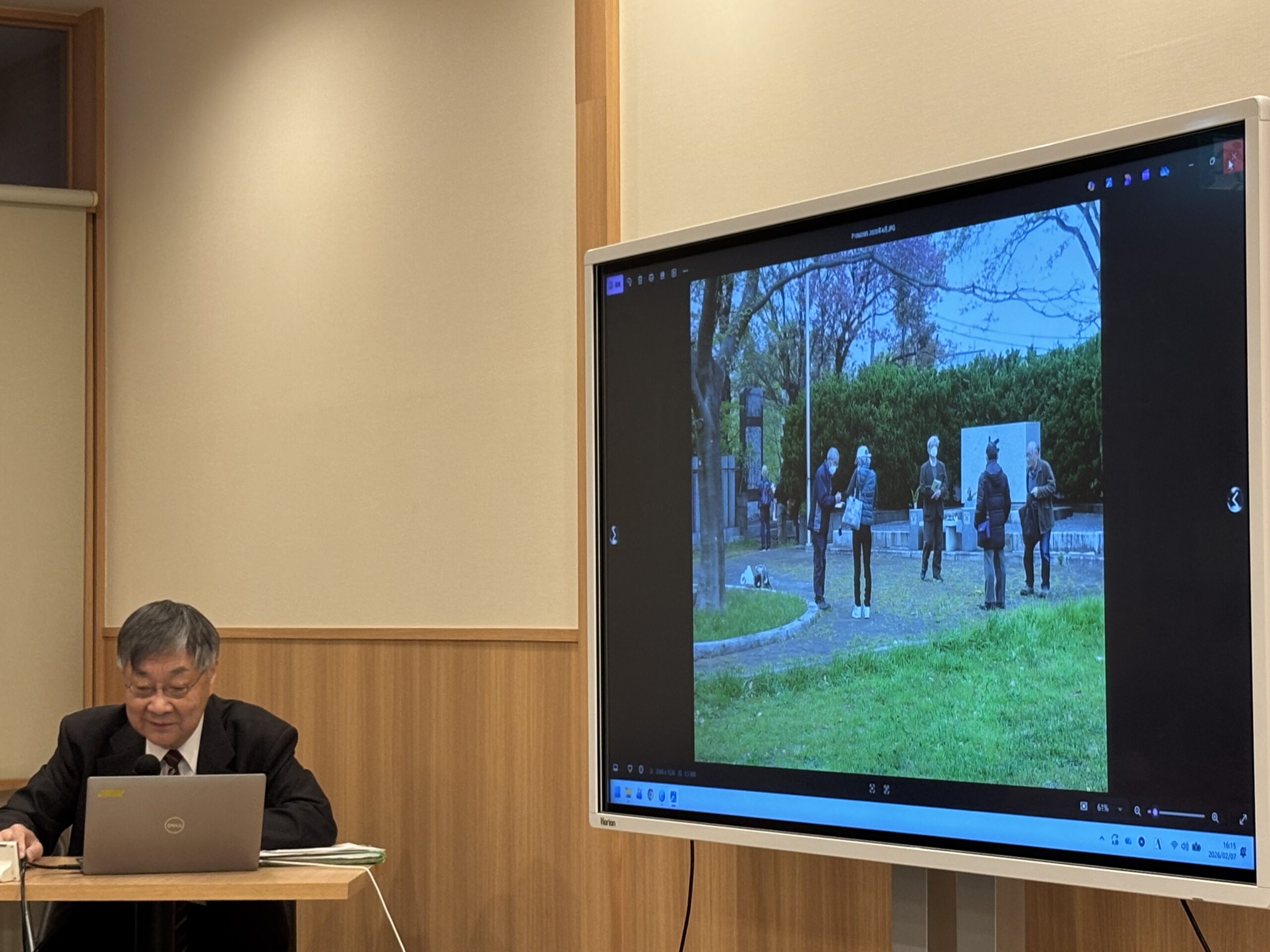 祝電披露と各都県(茨城、栃木、群馬、埼玉、千葉、東京、神奈川、山梨、新潟、長野)からの来賓を紹介された後は、第二部として群馬満蒙開拓歴史研究会の東宮春生氏('77経営)が「群馬満蒙開拓歴史研究会」の紹介とフィールドワークについて講演をされた。戦前・戦中における旧満州(現・中国東北部)での開拓団の学びを続けられている同研究会についてのご紹介、当時の歴史的背景や活動状況等を画像で丁寧にわかりやすくご説明され、会場の参加者はメモをとりながら熱心に聞き入っていた。
