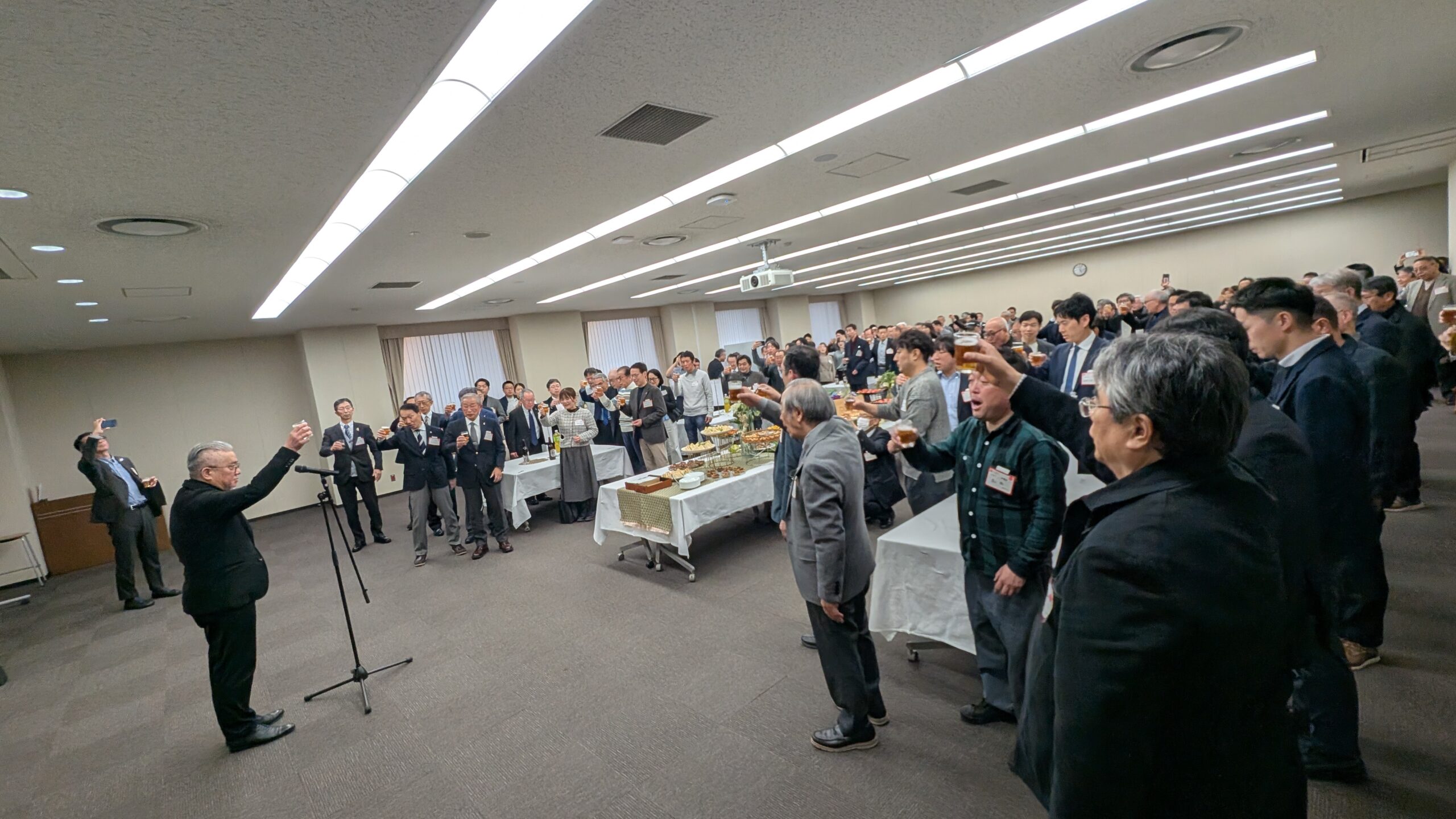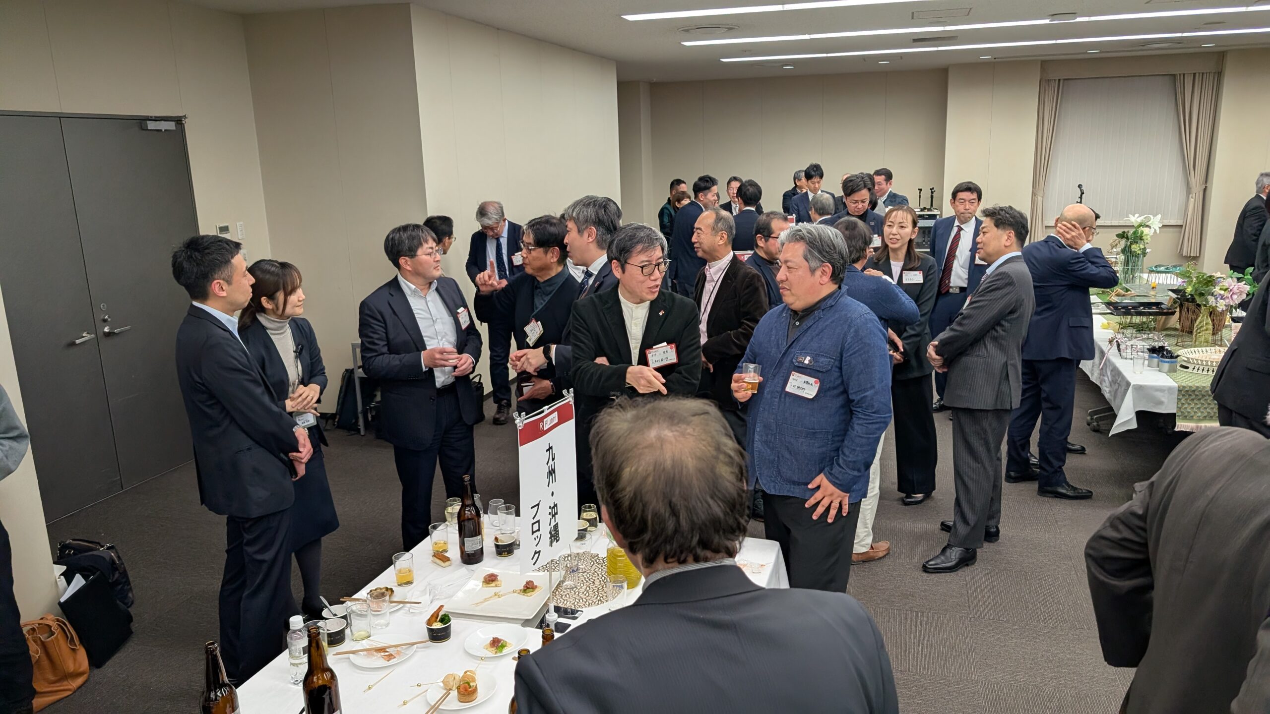 意見交換会が最後のプログラムであり、運営者会議としては終了となりましたが、新たな試みとして、朱雀キャンパス内にて任意参加の懇親会が開催されました。軽食や飲み物を手に、にぎやかな雰囲気の中で参加者同士の親睦がさらに深めました。