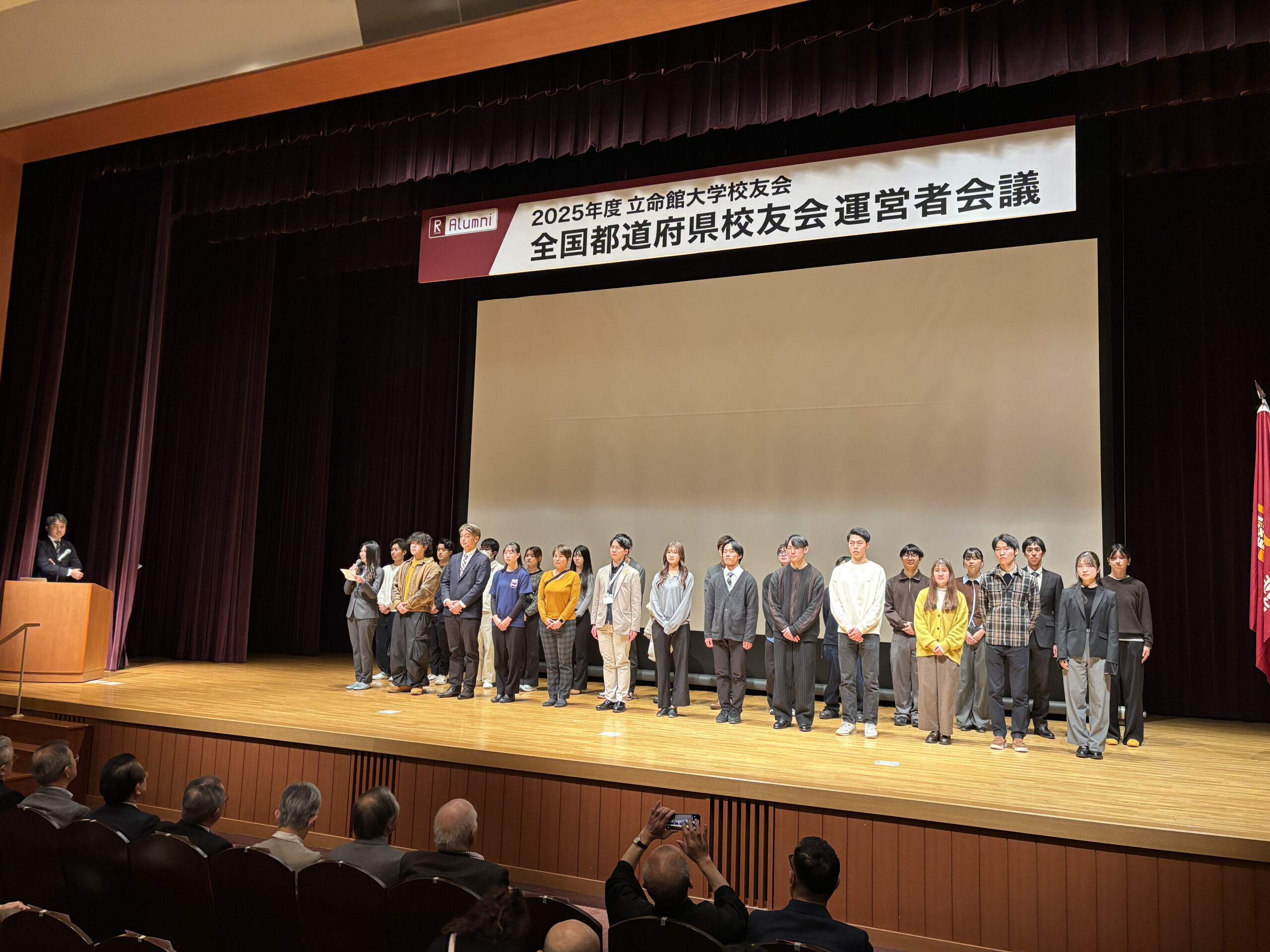 2026年2月21日(土)、「2025年度 立命館大学校友会 全国都道府県校友会運営者会議」を立命館大学朱雀キャンパスとオンライン配信のハイブリッド形式で開催しました。朱雀キャンパスには、全国から155名の都道府県校友会関係者が集いました。